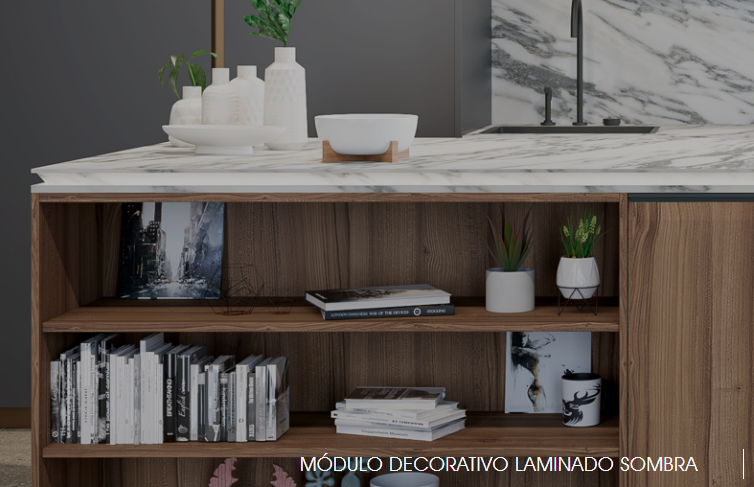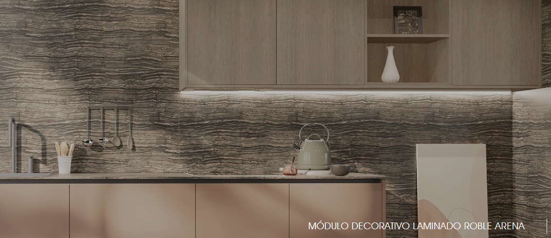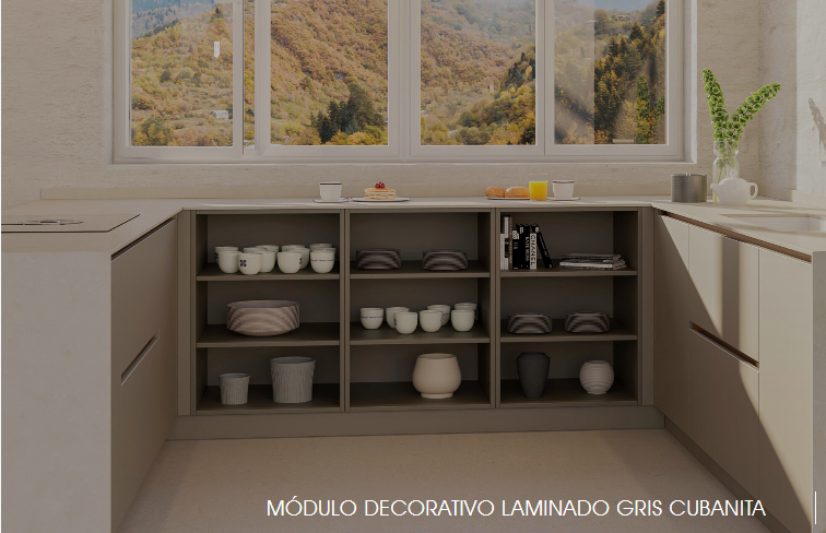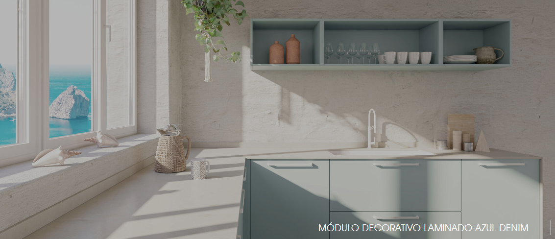 Además, en la nueva colección la posibilidad de creación de muebles decorativos se hace mayor y pueden fabricarse en todos los colores de laminados de 19mm existentes en la colección. Con esta novedad se pueden realizar diseños más bonitos todavía en cocinas al tono del resto de la decoración. Se debe tener en cuenta que esta variante va sin luz.